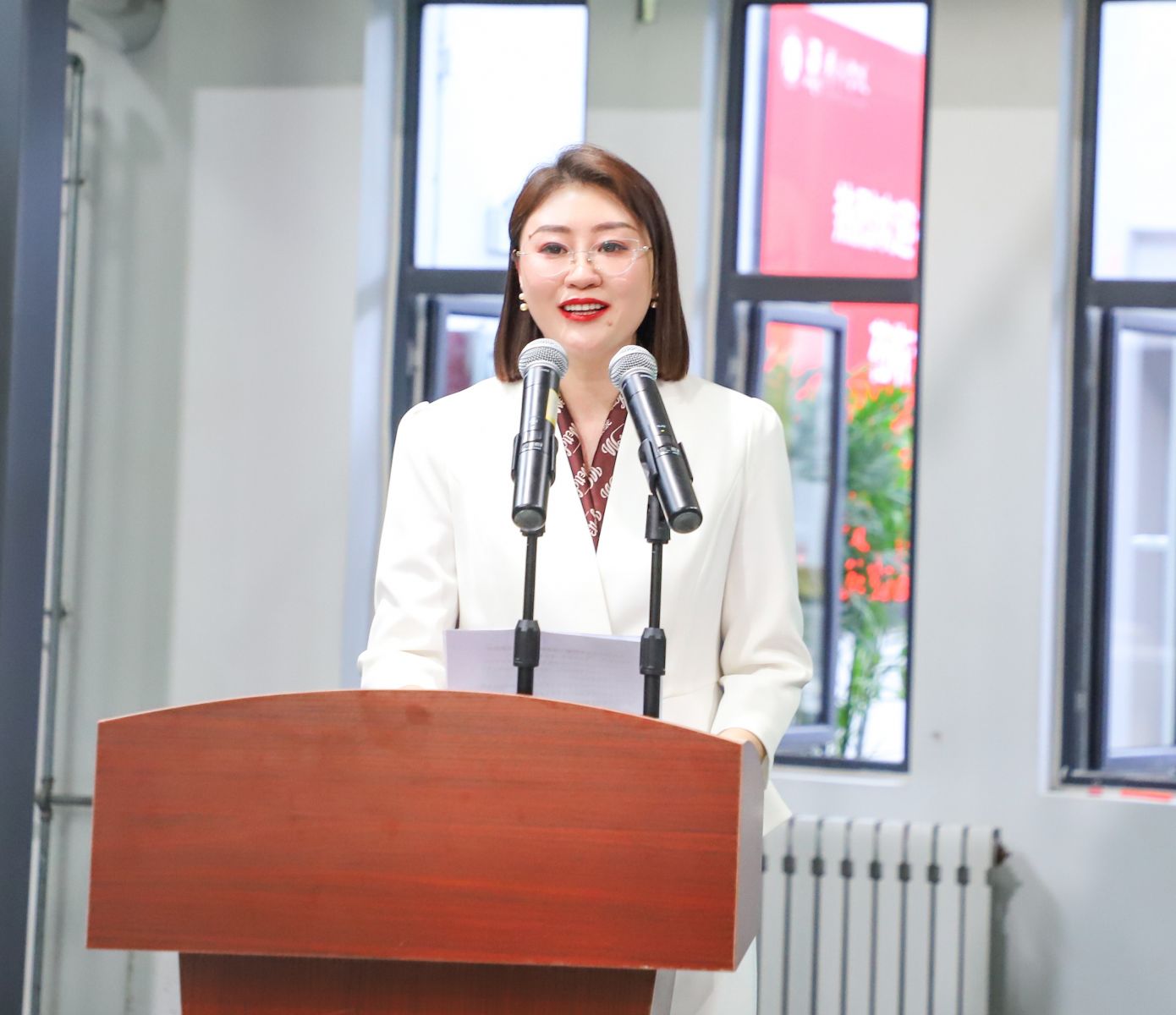 山東財經大學藝術學院黨委書記楊揚致辭,她表示一年一度的藝術學院藝術品競拍會即將精彩呈現,首先對支持藝術學院藝術實踐活動的各位領導嘉賓和社會各界人士表示衷心的感謝和熱烈歡迎。在社會各界和學校相關部門的支持幫助下,競拍活動已成為藝術學院本科教學過程中的一個亮點,同時已成為實踐課堂和校園文化不可或缺的重要組成部分。較于往屆,本屆藝術品競拍活動體現出明顯的優化與升級。同時,一場精彩的拍賣會需要拍賣師和競拍人的積極互動,大家每一次踴躍地舉牌和熱情地喊價,都是對青年學子藝術創作的充分肯定和莫大鼓勵,也是對藝術學院教學工作的巨大支持。再次感謝大家的光臨,讓我們共同期待競拍會的精彩呈現!